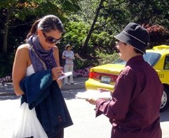 加拿大多伦多法轮功学员征集公众签名 呼吁敦促中国政府停止迫害法轮功 图为帮助发真相资料的印度裔母女俩2006-7-15
