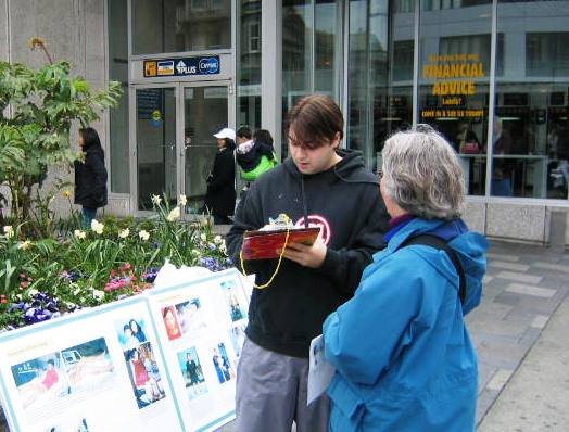 加拿大法轮功学员街头向民众讲法轮功真相 呼吁加拿大政府和人民谴责中共的残暴行为2006-3-27