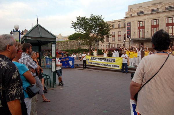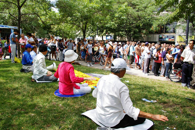 加拿大多伦多法轮功学员征集公众签名 呼吁敦促中国政府停止迫害法轮功 图为功法演示2006-7-15