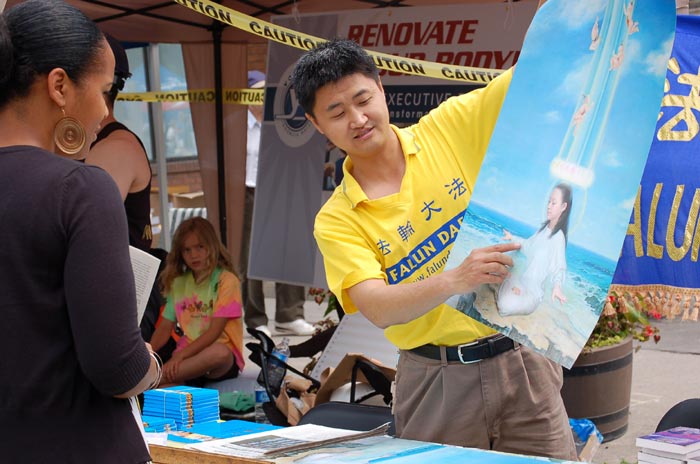 法轮功学员参加在多伦多世界第一长街的街道节日庆典活动图为通过绘画向民众讲真相2007-6-3