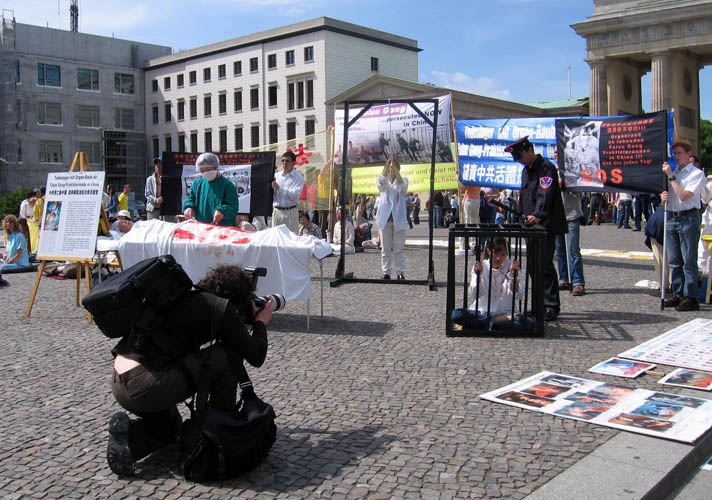 欧中人权对话在即 法轮功学员在柏林市中心广场集会揭露八年来中共对法轮功学员的血腥迫害2007-5-12