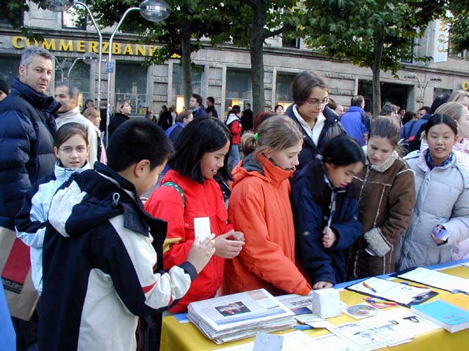 法轮功学员瑞士讲真相 人们纷纷前来了解情况