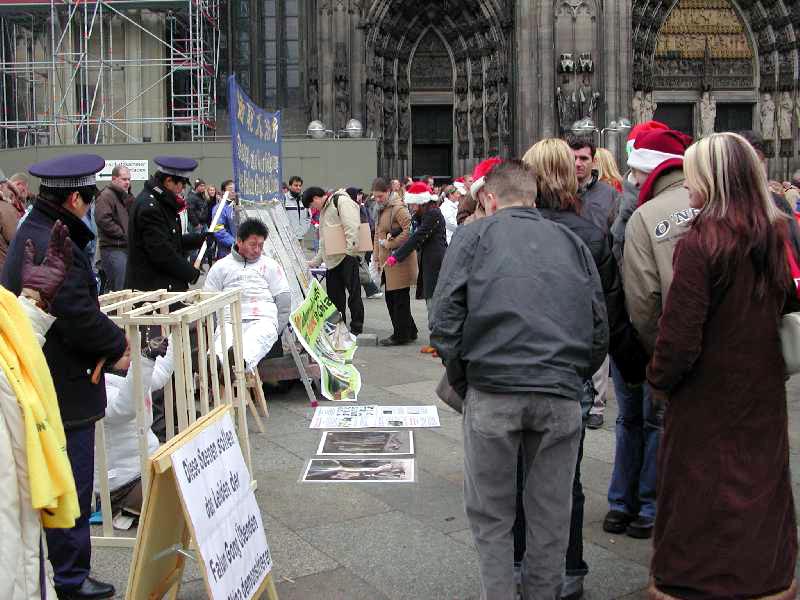 德国北莱茵州的法轮功学员于2004年世界人权日期间在世界著名的科隆大教堂前举办了两天的酷刑展
