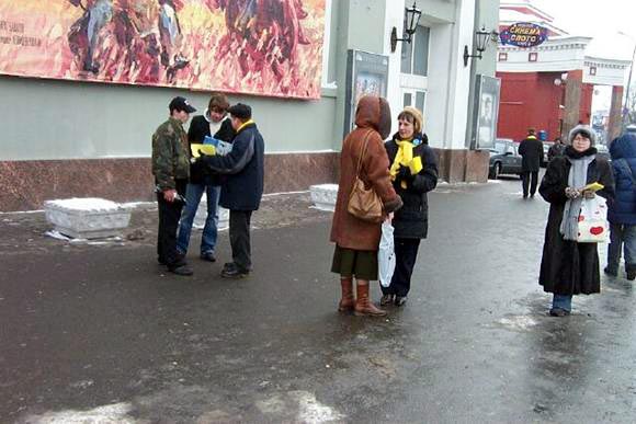俄罗斯圣-彼得堡法轮功学员在发放真相资料