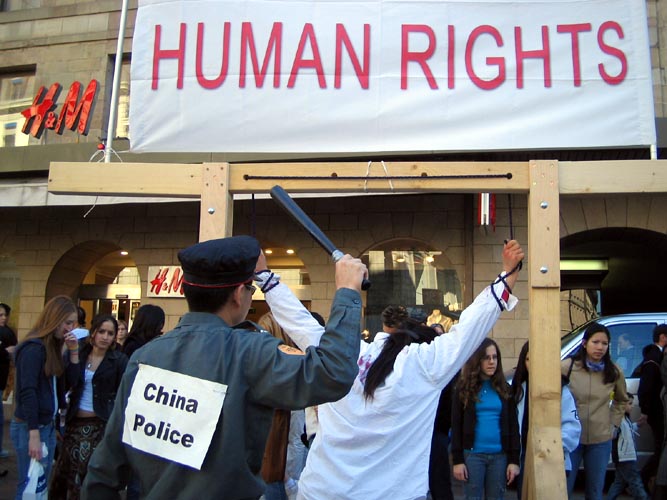 联合国人权会议期间 瑞士法轮功学员举行反酷刑展 揭露江氏集团在中国大陆对法轮功学员的残酷迫害