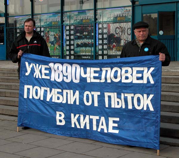 法轮功学员莫斯科市中心展示真相横幅及展板讲真相,呼吁停止在中国对法轮功学员的迫害