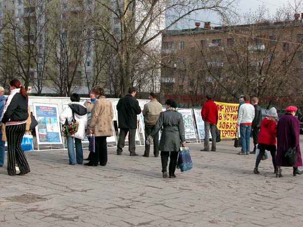 2005年2月俄罗斯法轮功学员在莫斯科地铁出口和公共汽车站向人们展示真相