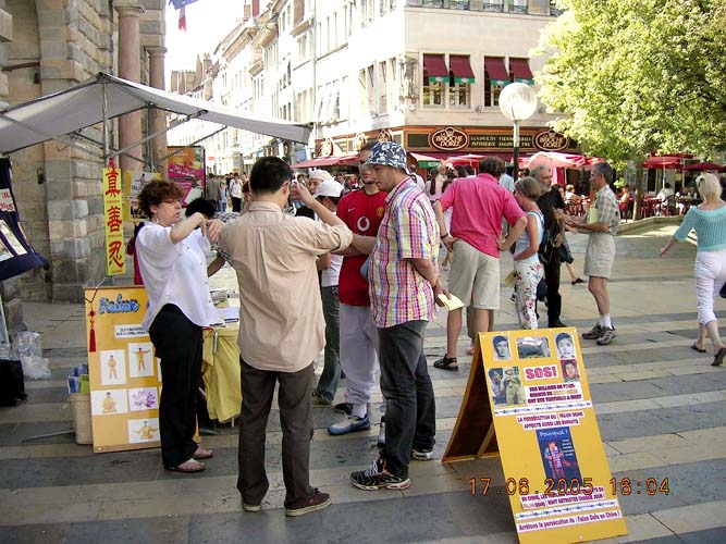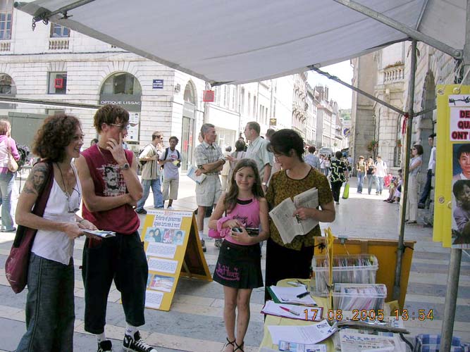 法国法轮功学员在贝桑松市的市中心繁华地带举行了三天的洪法及讲真相活动