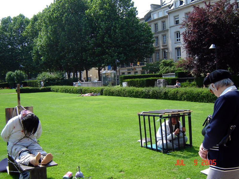 法国法轮功学员在诺曼底省讲真相第三站卡昂市中心,介绍法轮功及在中国发生的残酷迫害
