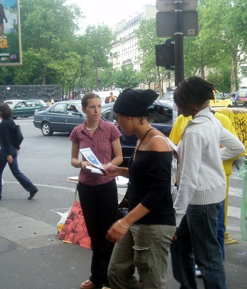 巴黎法轮功学员在各个街区介绍法轮功真相 呼吁人们关注在中国发生的对法轮功的迫害