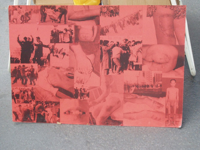 西班牙法轮功学员纪念“4.25”在著名古都托莱多(Toledo)市中心举办法轮功真相图片展 图为揭露酷刑迫害的图片深深的震撼着人们的心