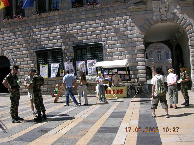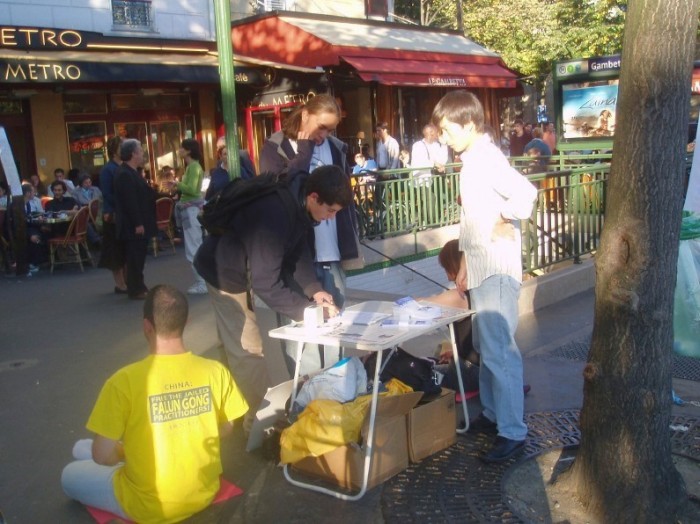 法轮功学员在巴黎甘必达广场讲真相, 征集签名反迫害 2005-10-15