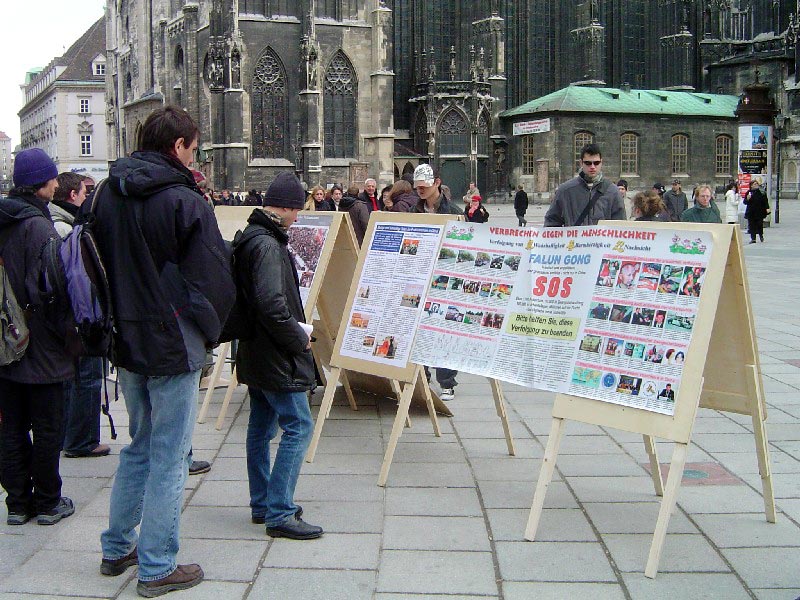 奥地学员在维也纳 Stephans platz 举办法轮大法信息日活动,许多人明白真相 2005-11-19