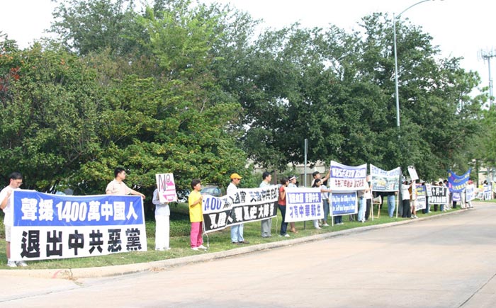 “十一”中共血腥日德州学员揭露中共残酷迫害法轮功的暴行 2006-10-1