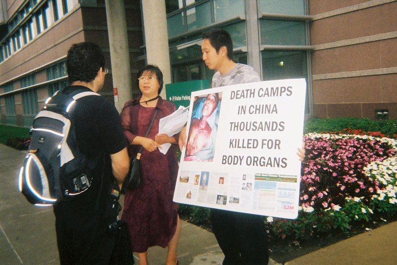 旧金山各界民众举行集会声援一千三百万退党并揭露中共活摘器官的罪行图为了解真相的民众.2006-9-9