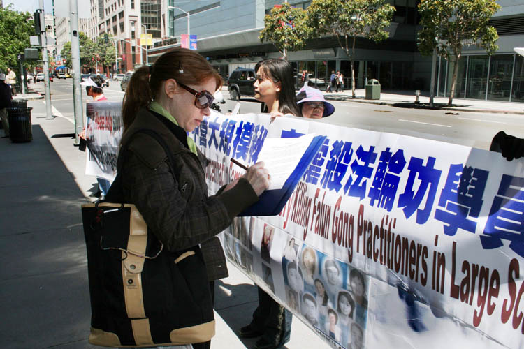 旧金山美国器官移植年会 法轮功学员在会场外揭露中共活摘法轮功学员器官的暴行 2007-5-5