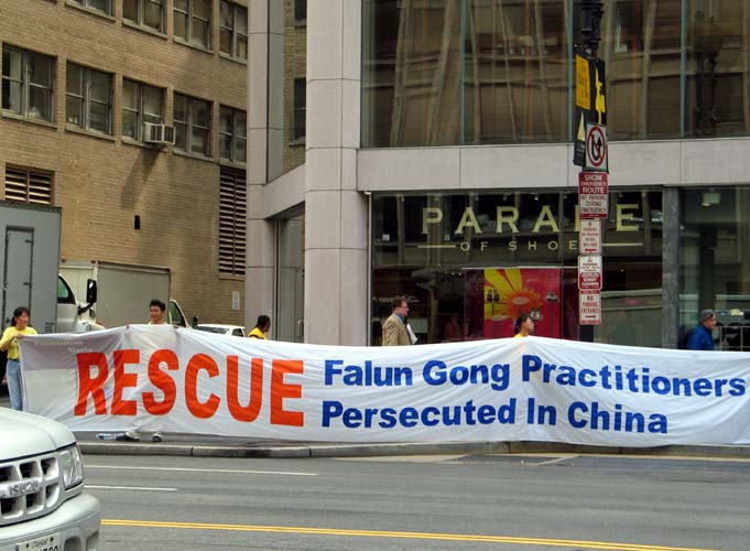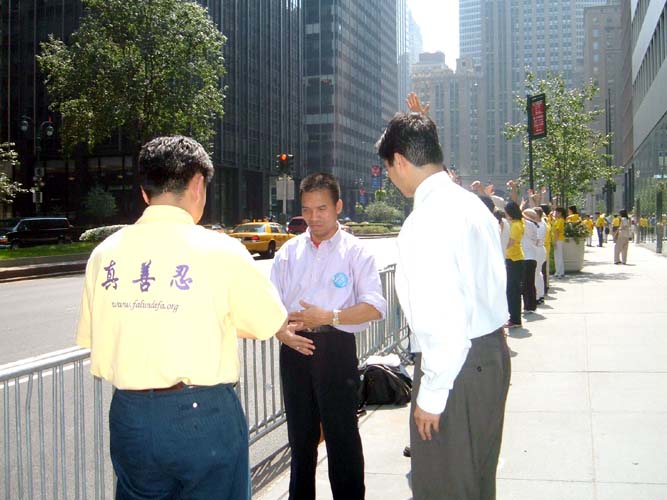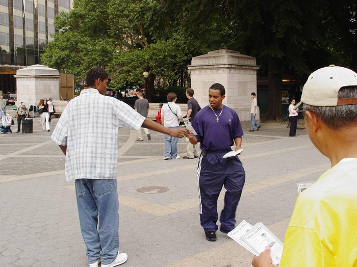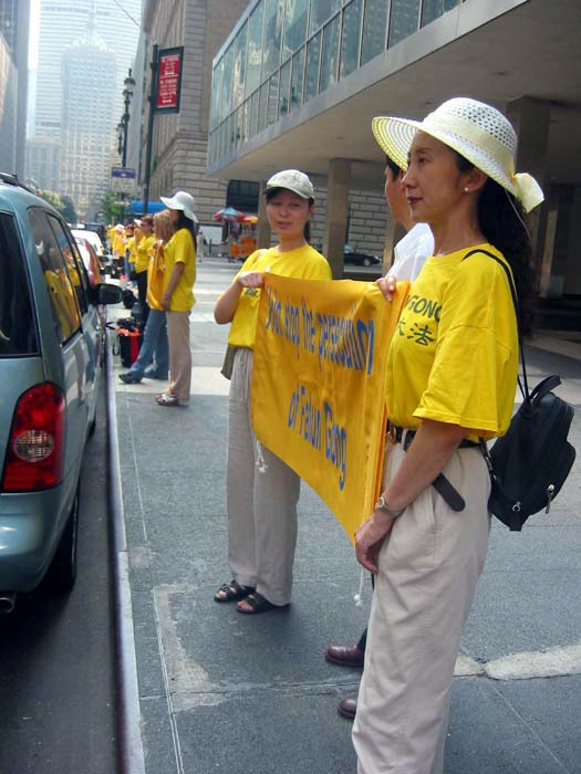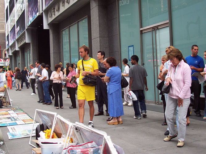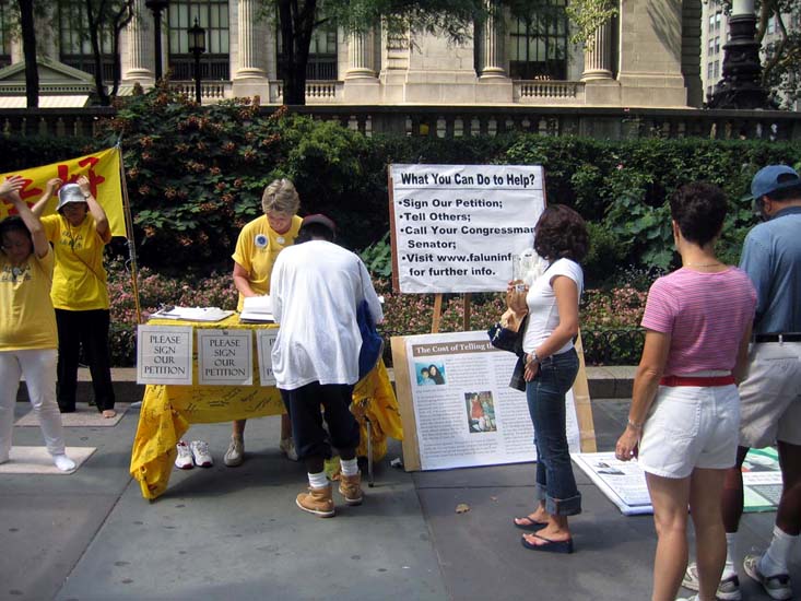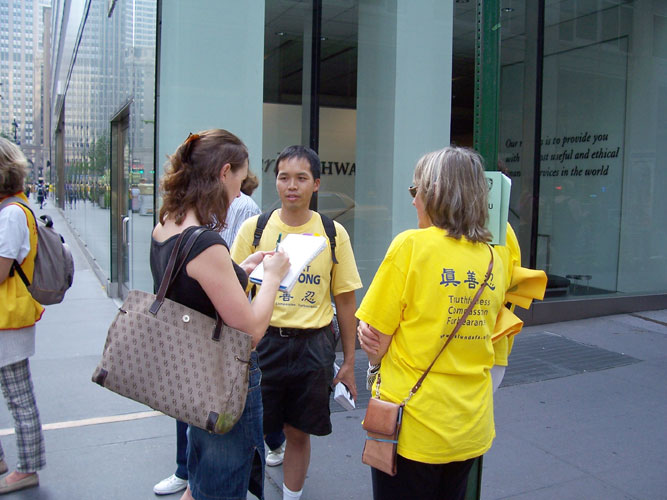 2004年8月周末法轮功学员在纽约讲真相