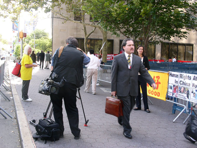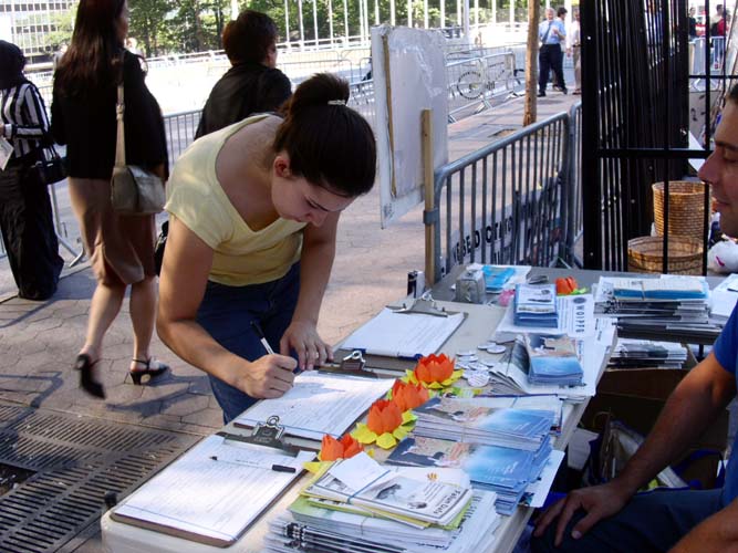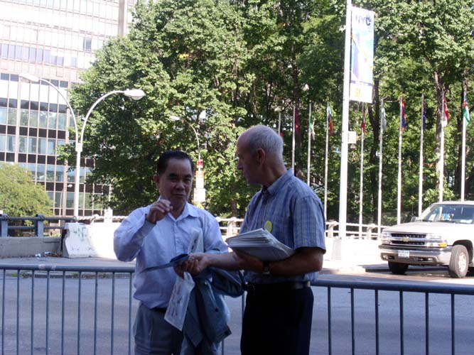 在纽约联合国总部召开年会期间法轮功学员讲真相