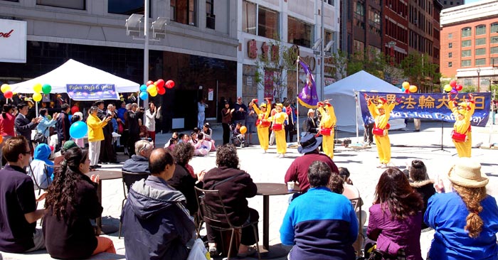 波士顿法轮功学员在哈佛广场参加五月节活动,洪法讲真相 2006-5-7