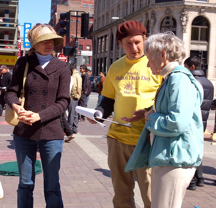 在中共党魁胡锦涛访问华盛顿期间,法轮功学员讲真相,民众签名支持反迫害 2006-4-20