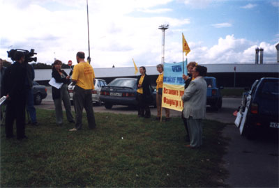 俄罗斯法轮功学员在八国高峰会议期间揭露中共残酷迫害的罪行,图为媒体采访2006-7-15至17