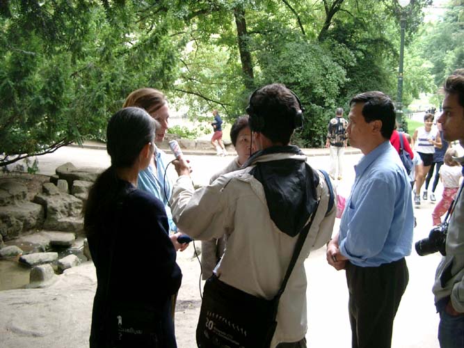 法国法轮功学员在Goyave公园举行庆祝世界法轮大法日的活动.图为电台采访2006-5-14