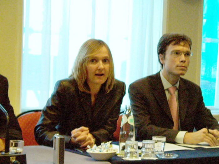欧洲法轮功学员在欧盟非正式首脑会议期间讲真相 呼吁共同谴责中共暴行 图为学员接受媒体采访2006-10-20