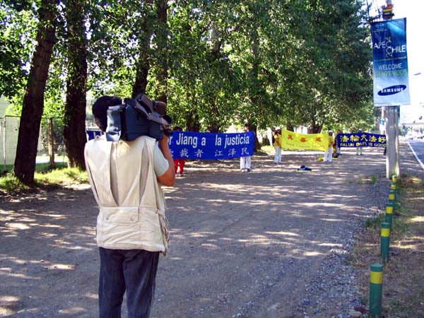 法轮功学员在江到访墨西哥参加峰会期间和平请愿--当地媒体采访学员