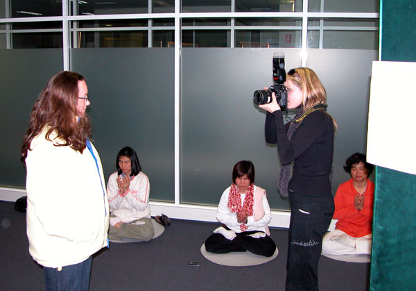 澳洲堪培拉法轮功学员在购物中心举办“真善忍国际美展”讲真相 图为“葵必艳时报”记者为学员拍照2006-7