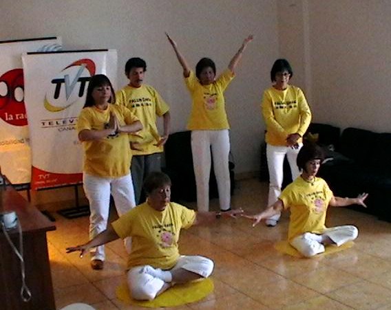 2002年10-11月墨西哥洪法图片--2002年10月9日,电视台采访当地法轮功学员