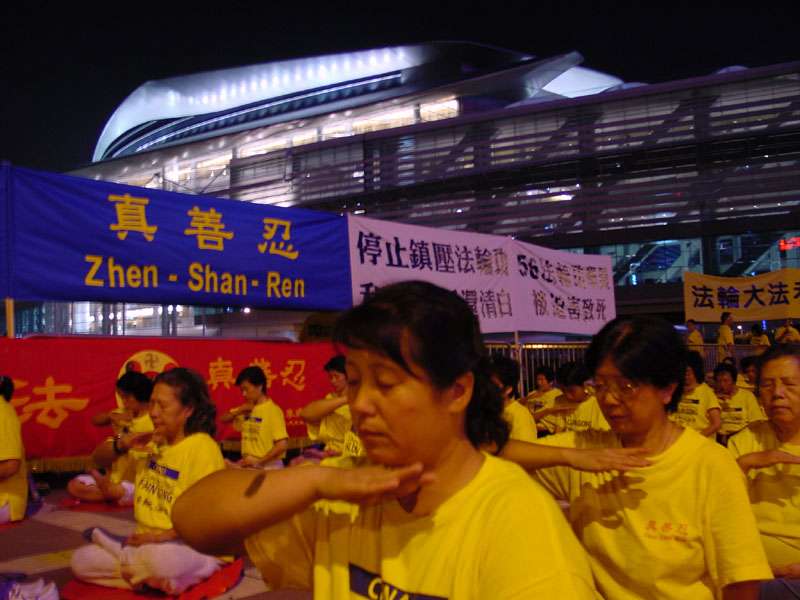 7.20周年,澳洲法轮功学员在堪培拉中国大使馆对面的草坪上和平请愿,要求停止迫害法轮功