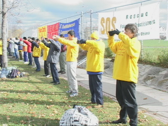 加拿大学员使馆前炼功呼吁释放朱颖、林慎立