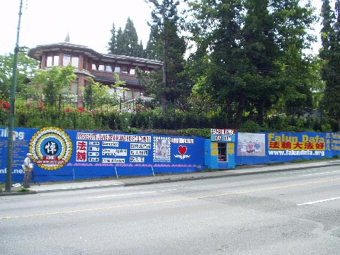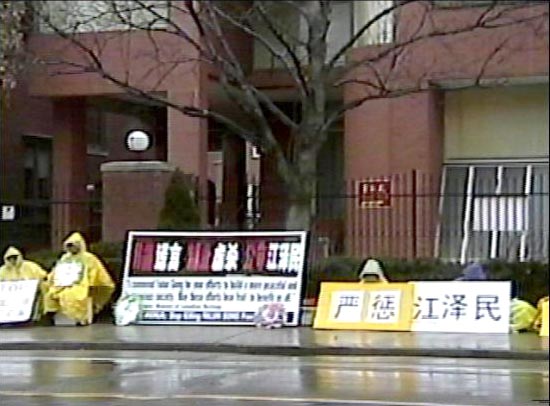 温哥华学员在中国领事馆抗议江泽民集团对法轮功学员的新一轮虐杀