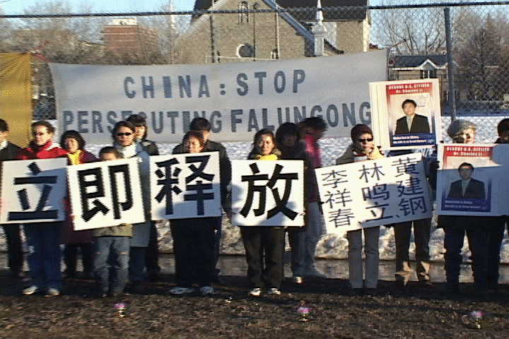 加拿大法轮功学员在驻加使馆前要求立即释放被吉林监狱非法关押的法轮功学员