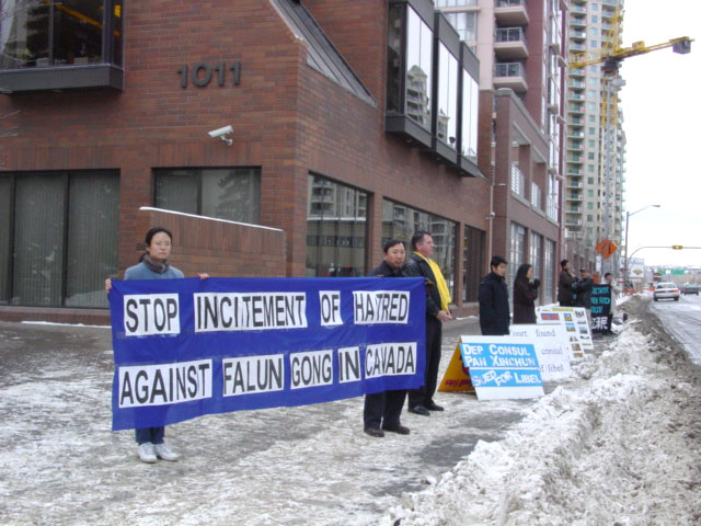 加拿大卡尔加里法轮功学员中领馆前和平请愿