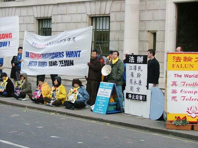 2004年2月英国法轮功学员在中国使领馆前请愿