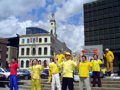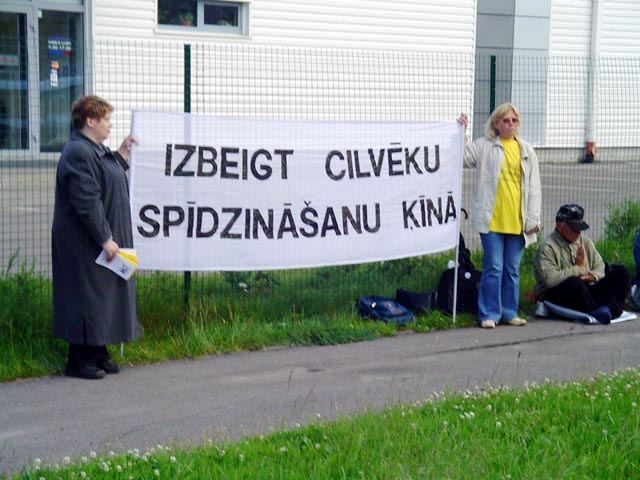 拉脱维亚法轮功学员中使馆前和平请愿,呼吁停止虐杀