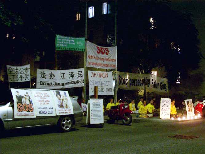 2004年6月17日,奥地利法轮功学员在维也纳的中国使馆前和平请愿