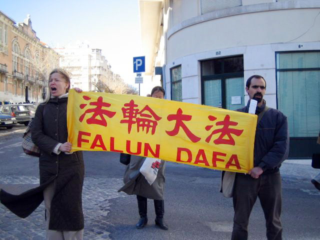 温家宝访问葡萄牙期间,欧洲学员在里斯本呼吁制止中共迫害法轮功 2005-12-9-10