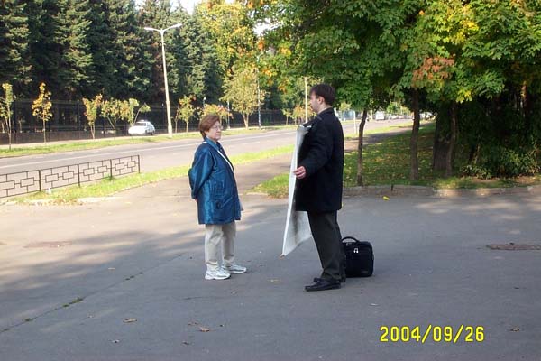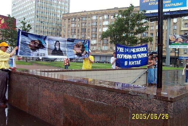 俄罗斯学员在莫斯科市中心、塔斯社大楼旁边的广场集会,要求停止迫害法轮功 俄罗斯 2005-1