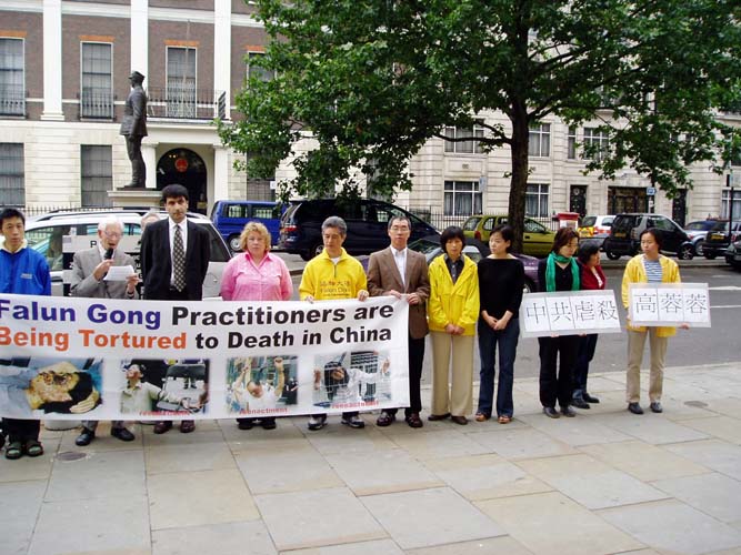 7.20六周年 英国法轮功学员伦敦中使馆前的和平请愿