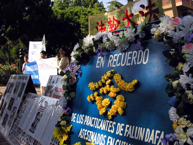 西班牙法轮功学员在中使馆前抗议中共虐杀法轮功学员高蓉蓉
