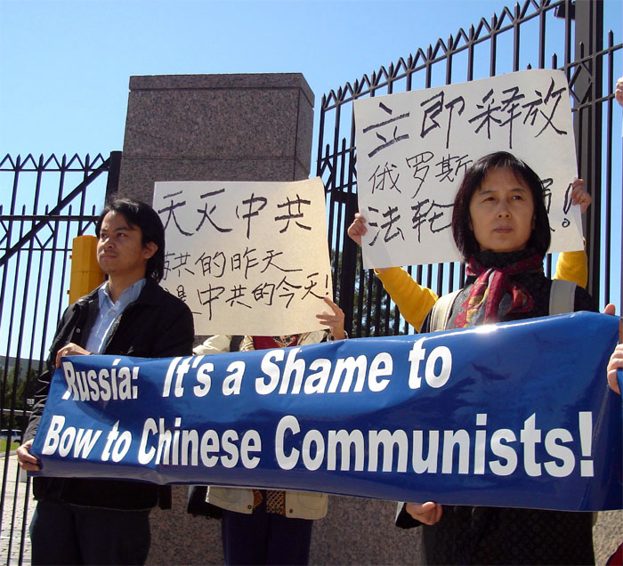 Published on 3/31/2007 华府法轮功学员抗议俄非法遣返难民母女(图)