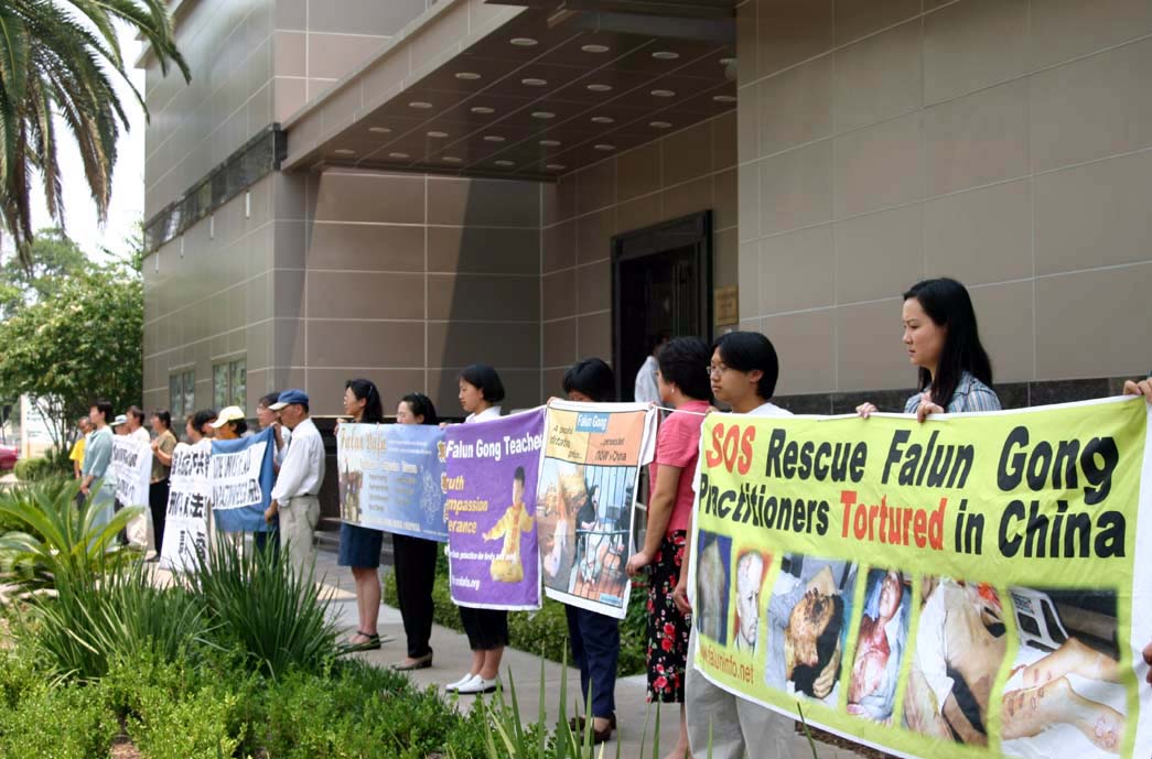 中共侨办代表团访问休士顿,法轮功学员和平呼吁 2006-6-4-5