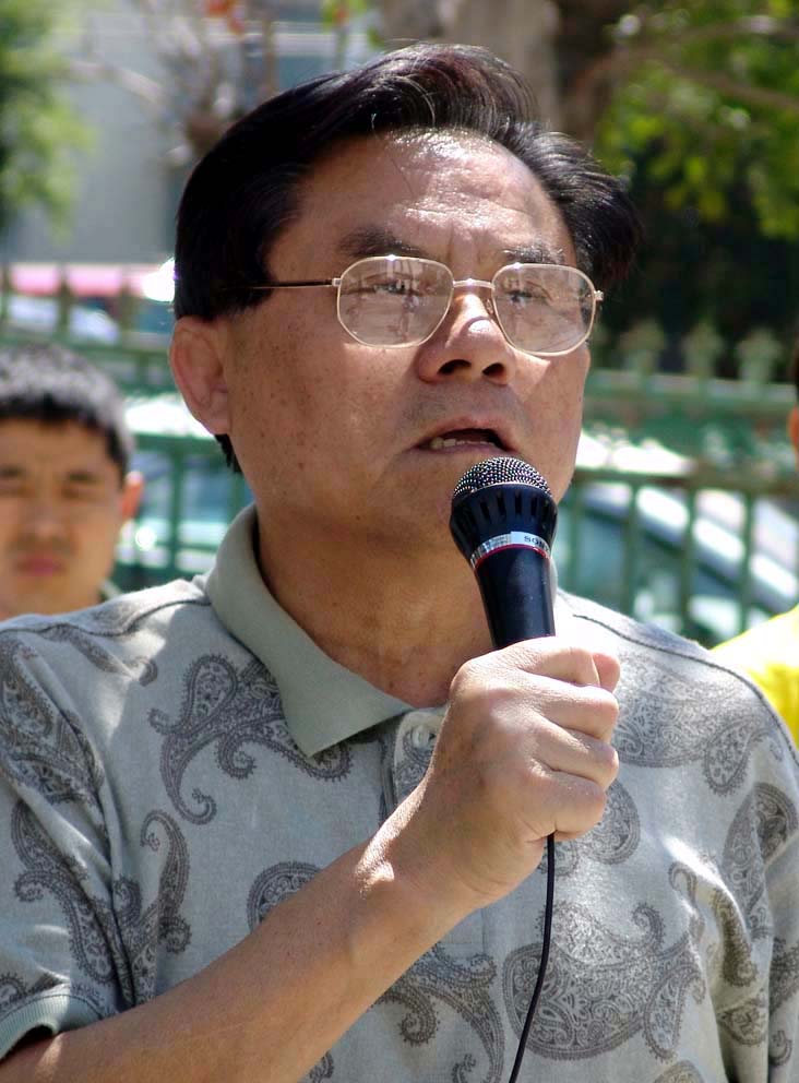 洛杉矶民众中领馆前集会 谴责中共恶警强奸兽行 图为中国社会民主党美西负责人刘因全发言2005-12-7