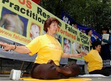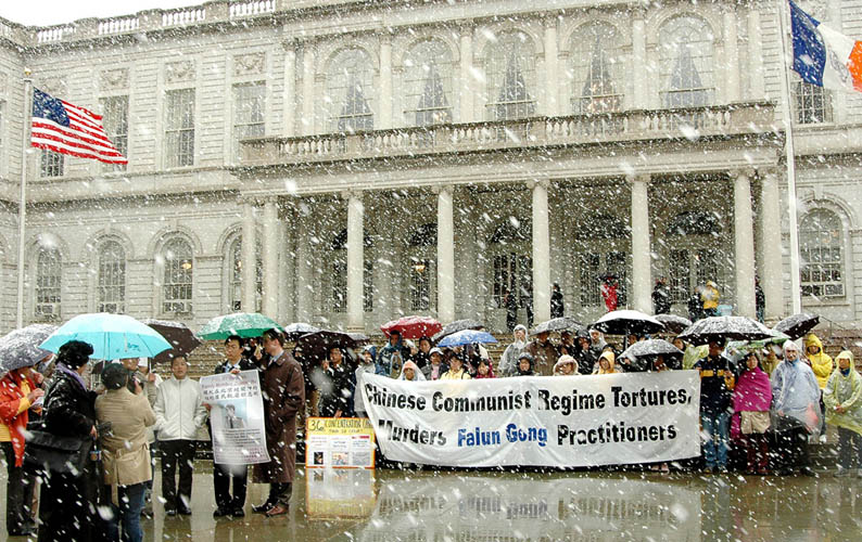 纽约法轮功在市府门前集会声讨中共设集中营迫害暴行06-4-5