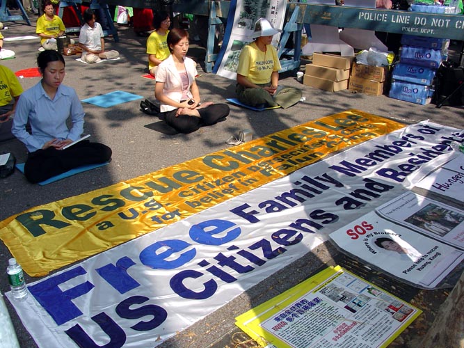 联合国各国元首高峰会议在纽约召开期间 法轮功学员在纽约中领馆前请愿呼吁停止迫害