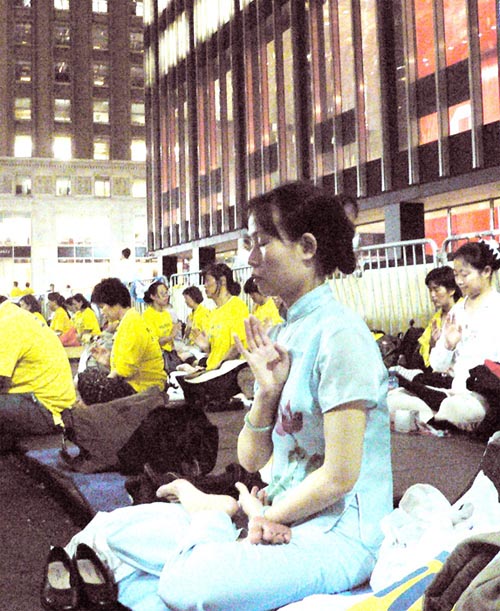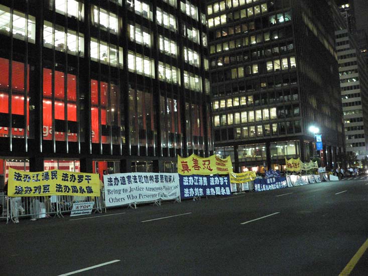 胡锦涛在纽约的几天 法轮功学员持续守夜在沃道夫酒店附近静坐请愿 场面非常感人
