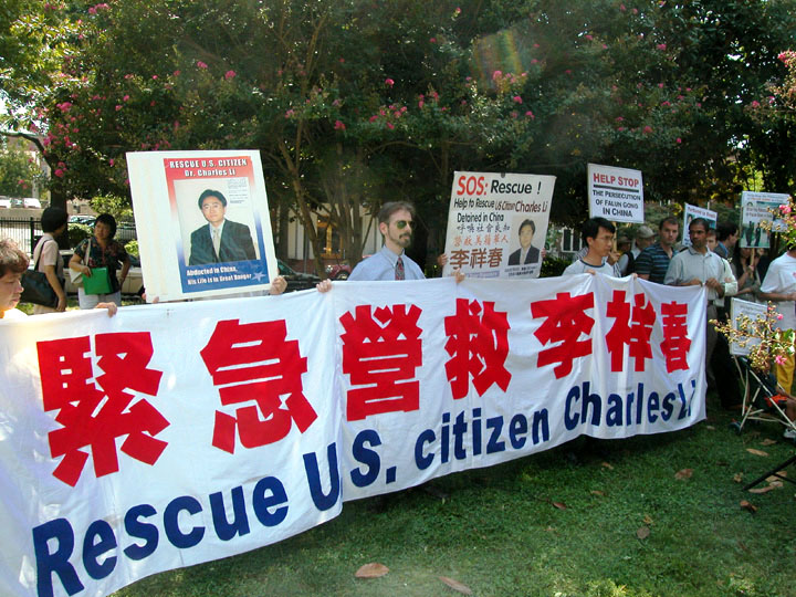 法轮功学员白宫前曝光苏家屯集中营 呼吁美国及各国政府立即制止中共杀人暴行2006-3-16/18