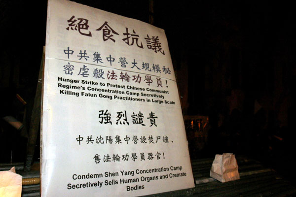 湾区学员在旧金山总领事馆前绝食和平抗议“苏家屯秘密集中营”的无人性暴行。